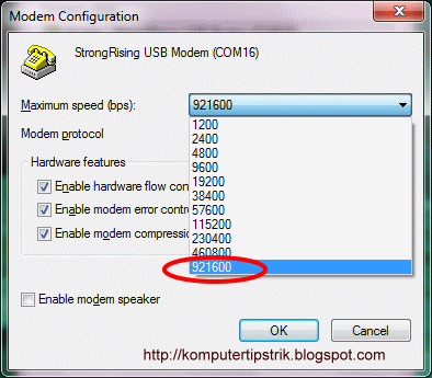 Biasanya software untuk koneksi ke internet bawaan modem menggunakan default speed dari modem yang bersangkutan yang biasanya tidak maksimal.