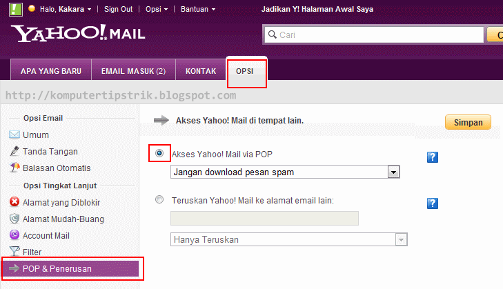6. Beri Centang (ceklist) pada Akses Yahoo! Mail Via POP