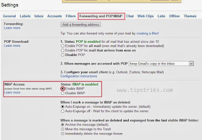 Yang pertama dilakukan adalah meng_enablekan Protokol IMAP dari menu Setting di Gmail.